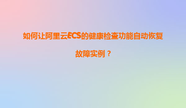 2025-11-12如何讓阿里云ECS的健康檢查功能自動恢復(fù)故障實(shí)例? ECS健康檢查的核心作用與價(jià)值 阿里云ECS的健康檢查功能是保障業(yè)務(wù)連續(xù)性的關(guān)鍵機(jī)制,通過周期性探測實(shí)例的運(yùn)行狀態(tài)(如網(wǎng)絡(luò)可達(dá)性、服務(wù)端...
