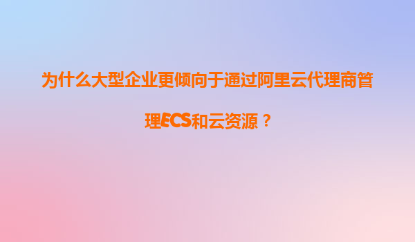 2025-11-11為什么大型企業(yè)更傾向于通過阿里云代理商管理ECS和云資源? 引言:企業(yè)上云的必然選擇與代理模式的價(jià)值 隨著數(shù)字化轉(zhuǎn)型浪潮的推進(jìn),大型企業(yè)對云計(jì)算資源的依賴日益加深。阿里云作為國內(nèi)領(lǐng)先的云服務(wù)提供商,其彈性...