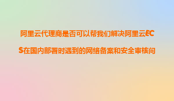 2025-11-10阿里云代理商是否可以幫我們解決阿里云ECS在國(guó)內(nèi)部署時(shí)遇到的網(wǎng)絡(luò)備案和安全審核問(wèn)題? 一、阿里云代理商的核心服務(wù)范圍 阿里云代理商是阿里云官方授權(quán)的合作伙伴,能夠?yàn)槠髽I(yè)用戶提供從云資源采購(gòu)到技術(shù)支...