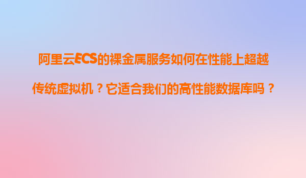 2025-11-10阿里云ECS裸金屬服務(wù)如何在性能上超越傳統(tǒng)虛擬機(jī)?它適合我們的高性能數(shù)據(jù)庫嗎? 引言:云計(jì)算的性能之爭 隨著企業(yè)數(shù)字化轉(zhuǎn)型的加速,云計(jì)算服務(wù)的選擇成為技術(shù)決策的關(guān)鍵。傳統(tǒng)虛擬機(jī)(VM)因其靈活性和資...