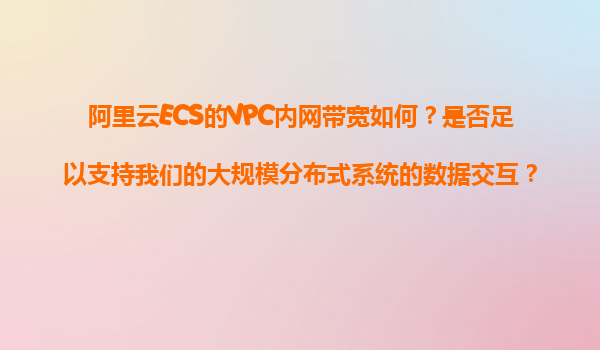 2025-11-08阿里云ECS的VPC內(nèi)網(wǎng)帶寬如何?是否足以支持大規(guī)模分布式系統(tǒng)的數(shù)據(jù)交互? 一、ECS的VPC內(nèi)網(wǎng)帶寬性能概述 阿里云ECS的VPC(專有網(wǎng)絡)通過軟件定義網(wǎng)絡(SDN)技術提供高性能的內(nèi)網(wǎng)通信能力。不同...