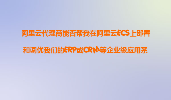 2025-11-08阿里云代理商能否幫我在阿里云ECS上部署和調(diào)優(yōu)我們的ERP或CRM等企業(yè)級應用系統(tǒng)? 引言:企業(yè)級應用上云的挑戰(zhàn)與機遇 隨著數(shù)字化轉型的加速,越來越多的企業(yè)選擇將ERP、CRM等核心業(yè)務系統(tǒng)遷移到云...