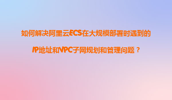 2025-11-08如何解決阿里云ECS在大規(guī)模部署時遇到的IP地址和VPC子網(wǎng)規(guī)劃和管理問題 引言:大規(guī)模部署中的核心挑戰(zhàn) 隨著企業(yè)數(shù)字化轉(zhuǎn)型加速,阿里云ECS(彈性計算服務)的大規(guī)模部署成為許多業(yè)務場景的標配。然而...