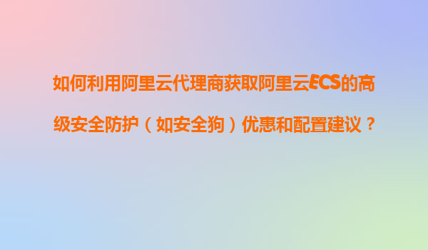 2025-11-05如何利用阿里云代理商獲取阿里云ECS的高級安全防護(hù)(如安全狗)優(yōu)惠和配置建議 一、阿里云代理商的價值與選擇策略 在獲取阿里云ECS高級安全防護(hù)服務(wù)時,通過正規(guī)代理商合作能顯著降低成本。代理商通常擁有...