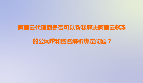 2025-11-05阿里云代理商是否可以幫我解決阿里云ECS的公網(wǎng)IP和域名解析綁定問題? 引言:ECS公網(wǎng)IP與域名解析的重要性 在搭建網(wǎng)站或部署應(yīng)用時,將阿里云ECS的公網(wǎng)IP與域名正確綁定是至關(guān)重要的第一步。這不僅關(guān)系到用戶能...