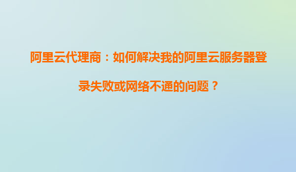 2025-11-02阿里云代理商:如何解決我的阿里云服務(wù)器登錄失敗或網(wǎng)絡(luò)不通的問題? 引言:服務(wù)器故障的常見表現(xiàn)與影響 在使用阿里云服務(wù)器時,登錄失敗或網(wǎng)絡(luò)不通是用戶最常遇到的問題之一。這些問題不僅會影響業(yè)務(wù)連續(xù)性,還可...