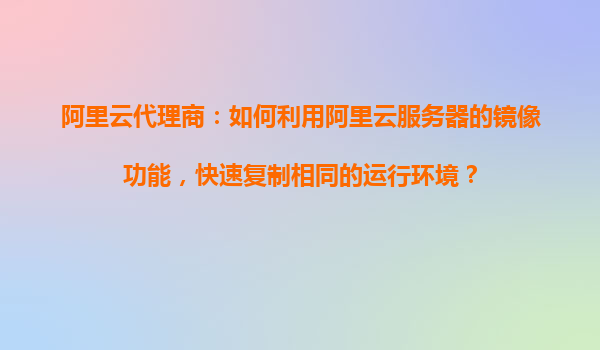2025-11-01阿里云代理商:如何利用阿里云服務(wù)器的鏡像功能,快速復(fù)制相同的運(yùn)行環(huán)境? 引言:阿里云服務(wù)器鏡像功能的強(qiáng)大應(yīng)用 隨著云計(jì)算技術(shù)的發(fā)展,阿里云作為國內(nèi)領(lǐng)先的云計(jì)算服務(wù)提供商,其功能強(qiáng)大的服...