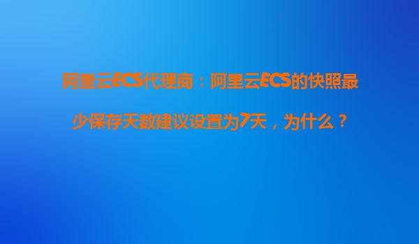 2025-11-01阿里云ECS代理商:阿里云ECS的快照最少保存天數(shù)建議設(shè)置為7天,為什么? 一、引言:數(shù)據(jù)安全與快照的重要性 在云計(jì)算時代,數(shù)據(jù)安全是企業(yè)運(yùn)營的核心保障。阿里云ECS(ElasticComputeService)作為國內(nèi)領(lǐng)...