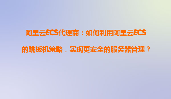 4008-020-360 阿里云ECS代理商:如何利用阿里云ECS的跳板機(jī)策略,實(shí)現(xiàn)更安全的服務(wù)器管理? 一、引言:安全是服務(wù)器管理的核心訴求 隨著云計(jì)算技術(shù)的快速發(fā)展,越來(lái)越多的企業(yè)將業(yè)務(wù)遷移至云端,阿里云ECS作為國(guó)內(nèi)領(lǐng)先...