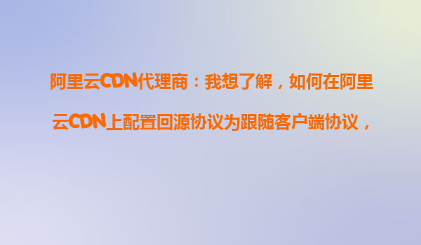 4008-020-360 阿里云CDN代理商指南:靈活配置回源協(xié)議跟隨客戶端協(xié)議 一、回源協(xié)議跟隨客戶端協(xié)議的核心價(jià)值 在阿里云CDN的配置中,"回源協(xié)議跟隨客戶端協(xié)議"是一種能動(dòng)態(tài)匹配用戶請(qǐng)求協(xié)議的策略。當(dāng)客戶端以HTTP或HTTPS...