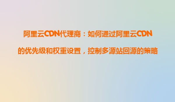 2025-10-26阿里云CDN代理商:如何通過(guò)阿里云CDN的優(yōu)先級(jí)和權(quán)重設(shè)置,控制多源站回源的策略? 引言:多源站回源的需求背景 在現(xiàn)代化的互聯(lián)網(wǎng)架構(gòu)中,企業(yè)往往需要部署多個(gè)源站來(lái)滿足高可用性、負(fù)載均衡和災(zāi)備需求。阿...