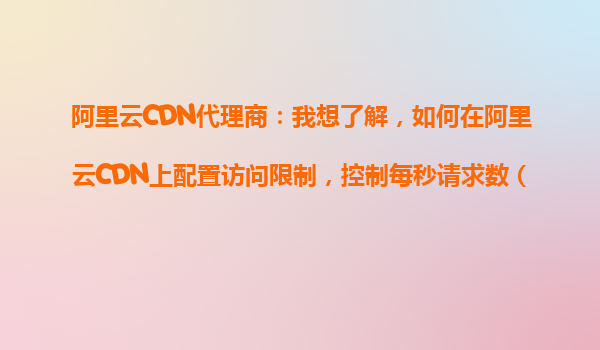 2025-10-26阿里云CDN代理商:如何在阿里云CDN上配置訪問(wèn)限制,控制每秒請(qǐng)求數(shù)(QPS) 一、控制QPS的重要性與應(yīng)用場(chǎng)景 作為阿里云CDN代理商,我們經(jīng)常遇到客戶對(duì)訪問(wèn)流量控制的訴求??刂泼棵胝?qǐng)求數(shù)(QPS)是保障服務(wù)器...