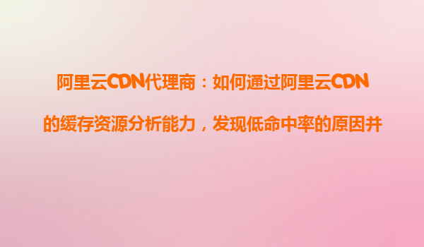 2025-10-25阿里云CDN代理商:如何通過阿里云CDN的緩存資源分析能力,發(fā)現(xiàn)低命中率的原因并優(yōu)化? 一、理解CDN緩存命中率的重要性 緩存命中率是衡量CDN性能的核心指標(biāo)之一,它直接反映了用戶請求的資源是否直接從...