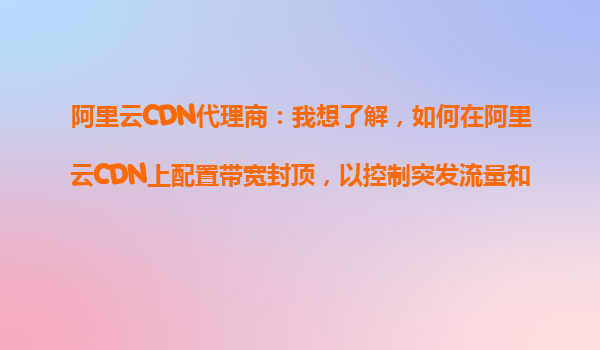 2025-10-24阿里云CDN代理商指南:如何配置帶寬封頂以控制突發(fā)流量與成本 前言:帶寬封頂?shù)谋匾?在數(shù)字化業(yè)務高速發(fā)展的今天,突發(fā)流量已成為許多企業(yè)面臨的常態(tài)。無論是促銷活動、熱點事件還是惡意攻擊,...