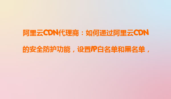4008-020-360 阿里云CDN代理商:如何通過阿里云CDN的安全防護功能,設(shè)置IP白名單和黑名單,進行訪問控制? 一、引言:CDN安全防護的重要性 隨著互聯(lián)網(wǎng)技術(shù)的快速發(fā)展,內(nèi)容分發(fā)網(wǎng)絡(CDN)已成為提升網(wǎng)站性能和用戶體驗...