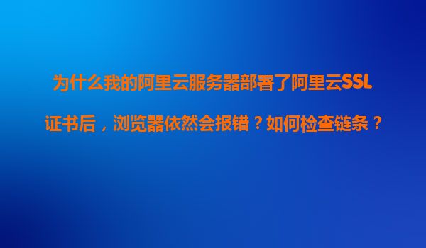 2025-11-19為什么我的阿里云服務(wù)器部署了阿里云SSL證書(shū)后,瀏覽器依然會(huì)報(bào)錯(cuò)?如何檢查鏈條? 一、瀏覽器報(bào)錯(cuò)的常見(jiàn)原因 在阿里云服務(wù)器上部署SSL證書(shū)后,瀏覽器仍然報(bào)錯(cuò)是一個(gè)常見(jiàn)問(wèn)題。這通常是...