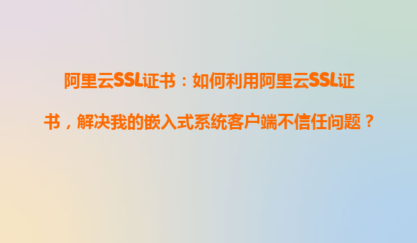 2025-10-19阿里云SSL證書:如何利用阿里云SSL證書解決嵌入式系統(tǒng)客戶端不信任問題 引言:嵌入式系統(tǒng)與SSL證書的信任挑戰(zhàn) 在物聯(lián)網(wǎng)(IoT)和嵌入式系統(tǒng)領(lǐng)域,設(shè)備與云端服務(wù)器的安全通信至關(guān)重要。然而,許多嵌入式系...