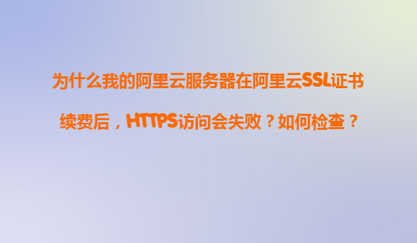 2025-11-17為什么我的阿里云服務(wù)器在SSL證書續(xù)費后HTTPS訪問會失???如何檢查? 一、SSL證書續(xù)費后HTTPS失敗的常見原因 阿里云服務(wù)器在SSL證書續(xù)費后出現(xiàn)HTTPS訪問失敗的情況,通常與證書配置、服務(wù)器環(huán)境或安全組件沖...