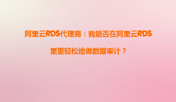 2025-10-06阿里云RDS代理商:我能否在阿里云RDS里更輕松地做數(shù)據(jù)審計(jì)? 引言:數(shù)據(jù)審計(jì)的重要性與挑戰(zhàn) 在當(dāng)今數(shù)字化時(shí)代,數(shù)據(jù)已成為企業(yè)最寶貴的資產(chǎn)之一。數(shù)據(jù)審計(jì)作為保障數(shù)據(jù)安全、合規(guī)運(yùn)營的重要手段,越來越受...