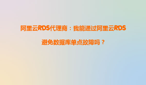 2025-10-06阿里云RDS代理商:我能通過阿里云RDS避免數(shù)據(jù)庫單點(diǎn)故障嗎? 引言:數(shù)據(jù)庫單點(diǎn)故障的風(fēng)險(xiǎn)與挑戰(zhàn) 在當(dāng)今數(shù)字化時(shí)代,數(shù)據(jù)庫是企業(yè)核心業(yè)務(wù)的重要支撐。然而,單點(diǎn)故障(SPOF)始終是數(shù)據(jù)庫架構(gòu)中的一大...