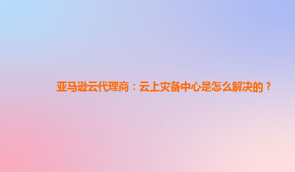亞馬遜云代理商:云上災(zāi)備中心的解決方案