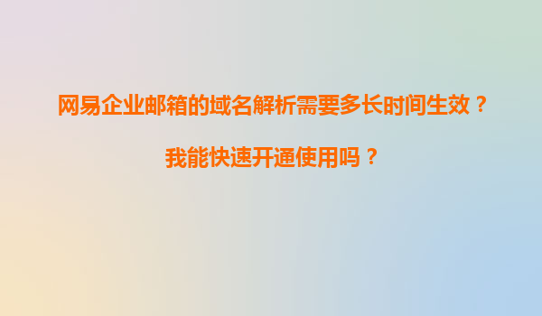 2025-11-20網(wǎng)易企業(yè)郵箱域名解析生效時間與快速使用指南 對于企業(yè)而言,高效穩(wěn)定的郵箱系統(tǒng)是日常辦公的重要工具。網(wǎng)易企業(yè)郵箱憑借其優(yōu)質(zhì)的服務(wù)和強(qiáng)大的功能,成為眾多企業(yè)的首選。在開通網(wǎng)易企業(yè)郵箱時,域名解析的生效時間...