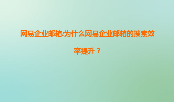 網(wǎng)易企業(yè)郵箱:為什么網(wǎng)易企業(yè)郵箱的搜索效率能大幅提升?