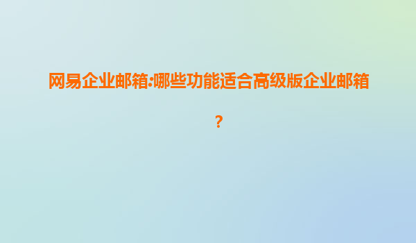 網(wǎng)易企業(yè)郵箱:高級版功能解析與核心優(yōu)勢
