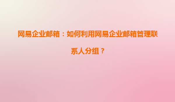 網(wǎng)易企業(yè)郵箱:如何利用網(wǎng)易企業(yè)郵箱管理聯(lián)系人分組?