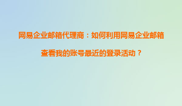 2025-11-03網(wǎng)易企業(yè)郵箱代理商:如何利用網(wǎng)易企業(yè)郵箱查看賬號最近的登錄活動? 引言 在當(dāng)今數(shù)字化時代,企業(yè)郵箱不僅是內(nèi)部溝通的重要工具,也是企業(yè)數(shù)據(jù)安全的關(guān)鍵環(huán)節(jié)。網(wǎng)易企業(yè)郵箱作為國內(nèi)領(lǐng)先的企業(yè)郵箱服務(wù)提供商,以...