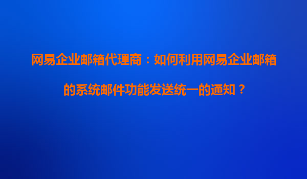 2025-11-03網(wǎng)易企業(yè)郵箱的系統(tǒng)郵件功能概述 網(wǎng)易企業(yè)郵箱作為國內(nèi)領(lǐng)先的企業(yè)通信解決方案之一,其系統(tǒng)郵件功能為企業(yè)提供了高效、穩(wěn)定的信息傳遞渠道。通過系統(tǒng)郵件功能,企業(yè)管理員可以輕松向全體員工或特定部門發(fā)送統(tǒng)一通知...
