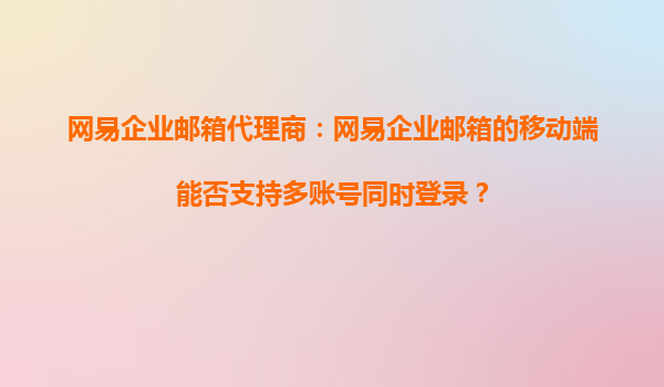 4008-020-360 網(wǎng)易企業(yè)郵箱代理商解析:移動端多賬號登錄功能及合作優(yōu)勢 一、網(wǎng)易企業(yè)郵箱移動端的多賬號支持 隨著移動辦公的普及,企業(yè)用戶對郵箱的便捷性需求日益增長...