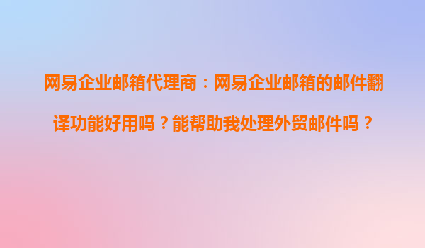 2025-11-03網(wǎng)易企業(yè)郵箱代理商:網(wǎng)易企業(yè)郵箱的郵件翻譯功能好用嗎?能幫助我處理外貿(mào)郵件嗎? 引言:外貿(mào)業(yè)務(wù)中的郵件溝通挑戰(zhàn) 對于從事外貿(mào)業(yè)務(wù)的企業(yè)和個人來說,跨語言郵件溝通是日常工作中不可避免的挑戰(zhàn)。語言障礙可能...