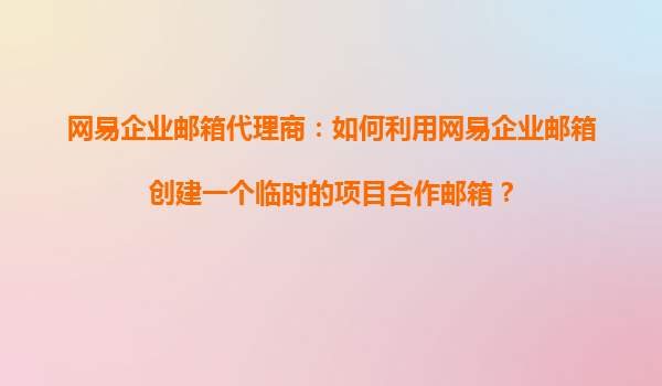 2025-11-03網(wǎng)易企業(yè)郵箱代理商:如何利用網(wǎng)易企業(yè)郵箱創(chuàng)建一個臨時的項目合作郵箱? 引言 在企業(yè)項目管理中,臨時項目合作郵箱是一種高效、安全的溝通方式,尤其適用于跨部門或跨企業(yè)的協(xié)作場景。網(wǎng)易企業(yè)郵箱作為國內(nèi)領(lǐng)...