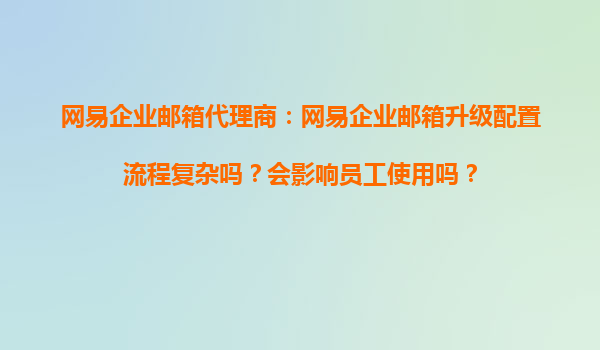 2025-11-03網(wǎng)易企業(yè)郵箱代理商:網(wǎng)易企業(yè)郵箱升級配置流程復(fù)雜嗎?會影響員工使用嗎? 一、網(wǎng)易企業(yè)郵箱升級配置流程解析 許多企業(yè)在考慮升級網(wǎng)易企業(yè)郵箱時,常會擔(dān)憂配置流程是否復(fù)雜、是否會...