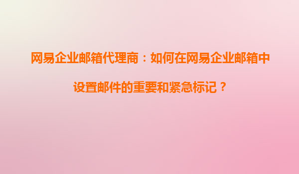 2025-11-03網(wǎng)易企業(yè)郵箱代理商指南:如何設(shè)置郵件的重要和緊急標(biāo)記 引言 在高效的商業(yè)溝通中,標(biāo)記郵件的優(yōu)先級是企業(yè)郵箱用戶提升效率的重要手段之一。作為網(wǎng)易企業(yè)郵箱的官方代理...