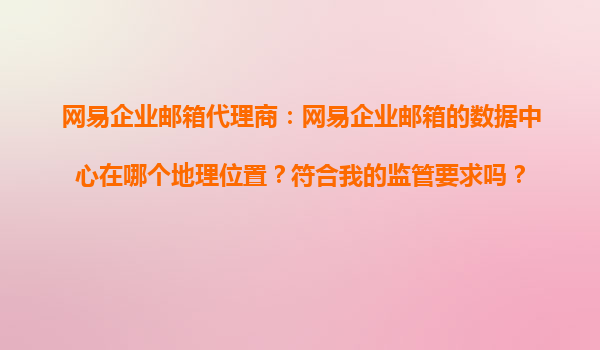 2025-11-03網(wǎng)易企業(yè)郵箱代理商:網(wǎng)易企業(yè)郵箱的數(shù)據(jù)中心在哪個地理位置?符合我的監(jiān)管要求嗎? 網(wǎng)易企業(yè)郵箱的數(shù)據(jù)中心地理位置 作為國內(nèi)領(lǐng)先的企業(yè)郵箱服務(wù)提供商,網(wǎng)易企業(yè)郵箱的數(shù)據(jù)中心主要分布在中國境...