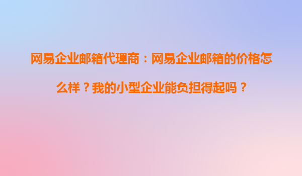 2025-11-02網(wǎng)易企業(yè)郵箱代理商:網(wǎng)易企業(yè)郵箱的價(jià)格怎么樣?我的小型企業(yè)能負(fù)擔(dān)得起嗎? 一、網(wǎng)易企業(yè)郵箱的核心優(yōu)勢(shì) 作為國(guó)內(nèi)領(lǐng)先的企業(yè)郵箱服務(wù)商,網(wǎng)易企業(yè)郵箱憑借以下優(yōu)勢(shì)成為眾多企業(yè)的首選: 高安全性:采...