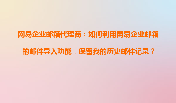2025-11-02網(wǎng)易企業(yè)郵箱郵件導(dǎo)入功能詳解 對(duì)于企業(yè)用戶而言,歷史郵件記錄承載著重要的業(yè)務(wù)信息和溝通脈絡(luò)。網(wǎng)易企業(yè)郵箱提供的郵件導(dǎo)入功能,能夠幫助用戶無(wú)縫遷移原有郵件數(shù)據(jù),確保業(yè)務(wù)連續(xù)性。本文將詳細(xì)介紹如何利用這一...