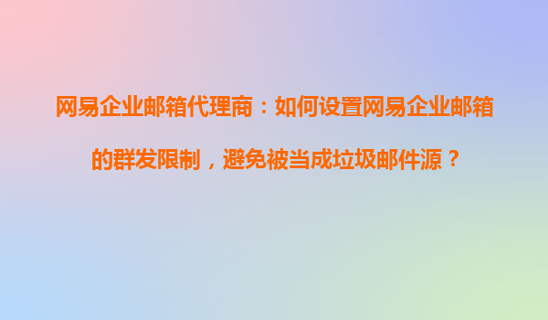 2025-11-02網(wǎng)易企業(yè)郵箱代理商:如何設(shè)置網(wǎng)易企業(yè)郵箱的群發(fā)限制,避免被當(dāng)成垃圾郵件源? 引言 在當(dāng)今數(shù)字化辦公環(huán)境中,企業(yè)郵箱是企業(yè)內(nèi)外部溝通的重要工具。網(wǎng)易企業(yè)郵箱作為國(guó)內(nèi)領(lǐng)先的企業(yè)郵箱服務(wù)提供商,以其高穩(wěn)定...