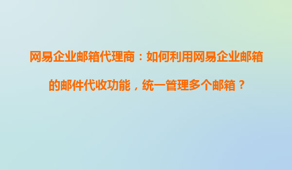 2025-11-02網(wǎng)易企業(yè)郵箱代理商的郵件代收功能:統(tǒng)一管理多個(gè)郵箱的利器 在現(xiàn)代企業(yè)辦公環(huán)境中,員工往往需要同時(shí)管理多個(gè)郵箱賬戶,如個(gè)人郵箱、公司郵箱、客戶郵箱等。頻繁切換登錄不僅費(fèi)時(shí)費(fèi)力,還容易遺漏重要郵件。作為網(wǎng)...