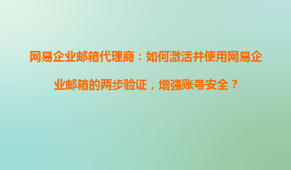 2025-11-02網(wǎng)易企業(yè)郵箱的兩步驗(yàn)證:激活與使用指南 網(wǎng)易企業(yè)郵箱安全升級(jí)的必要性 在數(shù)字化辦公時(shí)代,企業(yè)郵箱承載著重要的商業(yè)信息和溝通數(shù)據(jù)。網(wǎng)易企業(yè)郵箱作為國(guó)內(nèi)領(lǐng)先的企業(yè)郵箱服務(wù)商,始終將用戶賬號(hào)安全放在首位...