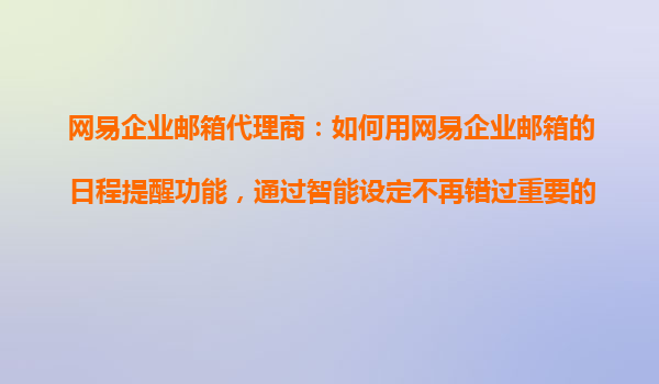 2025-10-27網(wǎng)易企業(yè)郵箱日程提醒功能:智能管理重要日期的得力助手 日程提醒功能的必要性 在現(xiàn)代快節(jié)奏的工作環(huán)境中,時(shí)間管理顯得尤為重要。無(wú)論是項(xiàng)目截止日期、客戶會(huì)議安排,還是同事的生日提醒,一個(gè)高效可...