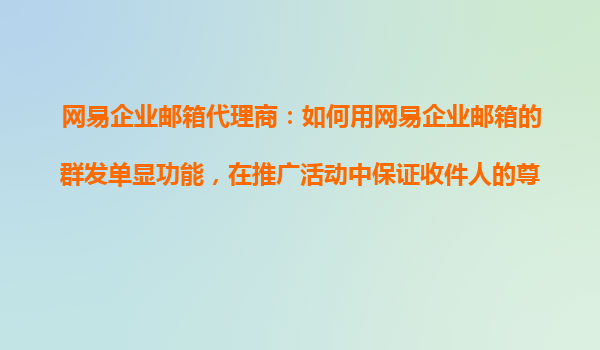 2025-10-26網(wǎng)易企業(yè)郵箱代理商:如何用網(wǎng)易企業(yè)郵箱的群發(fā)單顯功能,在推廣活動(dòng)中保證收件人的尊重感? 一、推廣活動(dòng)中的痛點(diǎn)與群發(fā)單顯的價(jià)值 在企業(yè)的營(yíng)銷推廣中,郵件群發(fā)是高效觸達(dá)目標(biāo)客戶的重要手段。然而...