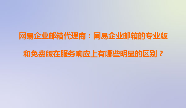 2025-10-26網(wǎng)易企業(yè)郵箱代理商:專業(yè)版與免費(fèi)版服務(wù)響應(yīng)對(duì)比及優(yōu)勢(shì)解析 一、服務(wù)響應(yīng)差異的核心體現(xiàn) 作為網(wǎng)易企業(yè)郵箱代理商,我們深知企業(yè)在選擇郵箱服務(wù)時(shí)最關(guān)注服務(wù)支持的及時(shí)...