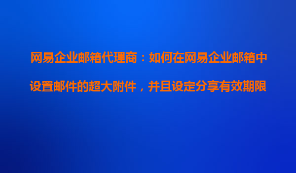 2025-10-26網(wǎng)易企業(yè)郵箱代理商:如何在網(wǎng)易企業(yè)郵箱中設(shè)置郵件的超大附件,并且設(shè)定分享有效期限? 一、網(wǎng)易企業(yè)郵箱的優(yōu)勢(shì) 網(wǎng)易企業(yè)郵箱憑借其強(qiáng)大的功能、穩(wěn)定的性能和優(yōu)質(zhì)的服務(wù),成為眾多企業(yè)的首選。以...