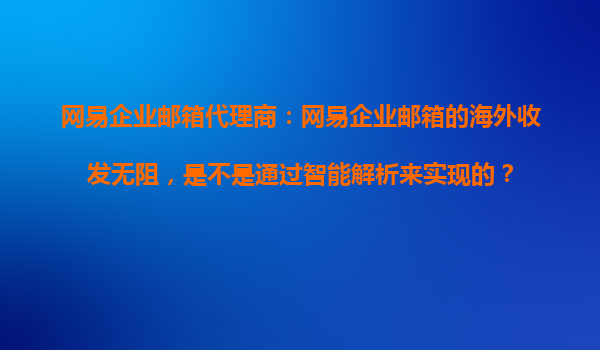 4008-020-360 網(wǎng)易企業(yè)郵箱代理商:網(wǎng)易企業(yè)郵箱的海外收發(fā)無阻,是不是通過智能解析來實現(xiàn)的? 在全球化商業(yè)環(huán)境中,企業(yè)郵箱的穩(wěn)定性和海外收發(fā)能力成為企業(yè)選擇郵箱服務(wù)的關(guān)鍵指標(biāo)之一。作為國內(nèi)領(lǐng)先的企業(yè)郵箱服務(wù)提...