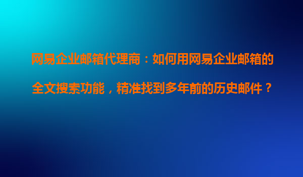 2025-10-24網(wǎng)易企業(yè)郵箱代理商:如何用網(wǎng)易企業(yè)郵箱的全文搜索功能,精準(zhǔn)找到多年前的歷史郵件? 一、全文搜索功能的重要性 在日常工作中,郵件是企業(yè)溝通的重要工具之一。隨著時間推移,郵件數(shù)量不斷增加,如何快速找...