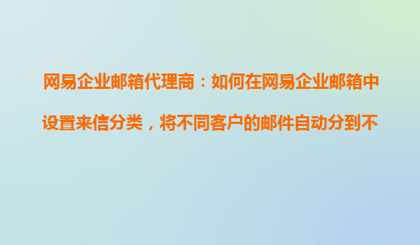 2025-10-25網(wǎng)易企業(yè)郵箱代理商指南:如何設(shè)置來信分類實現(xiàn)客戶郵件自動歸檔 一、網(wǎng)易企業(yè)郵箱的核心優(yōu)勢 作為國內(nèi)領(lǐng)先的企業(yè)郵箱服務(wù)商,網(wǎng)易企業(yè)郵箱以高穩(wěn)定性、智能管理功能和專業(yè)級安全...