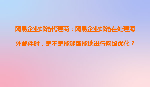 2025-10-24網(wǎng)易企業(yè)郵箱海外郵件智能網(wǎng)絡(luò)優(yōu)化解析:代理商的協(xié)同優(yōu)勢 一、網(wǎng)易企業(yè)郵箱的海外郵件處理能力 隨著全球化業(yè)務(wù)的發(fā)展,企業(yè)跨境溝通需求激增,而海外郵件的穩(wěn)...